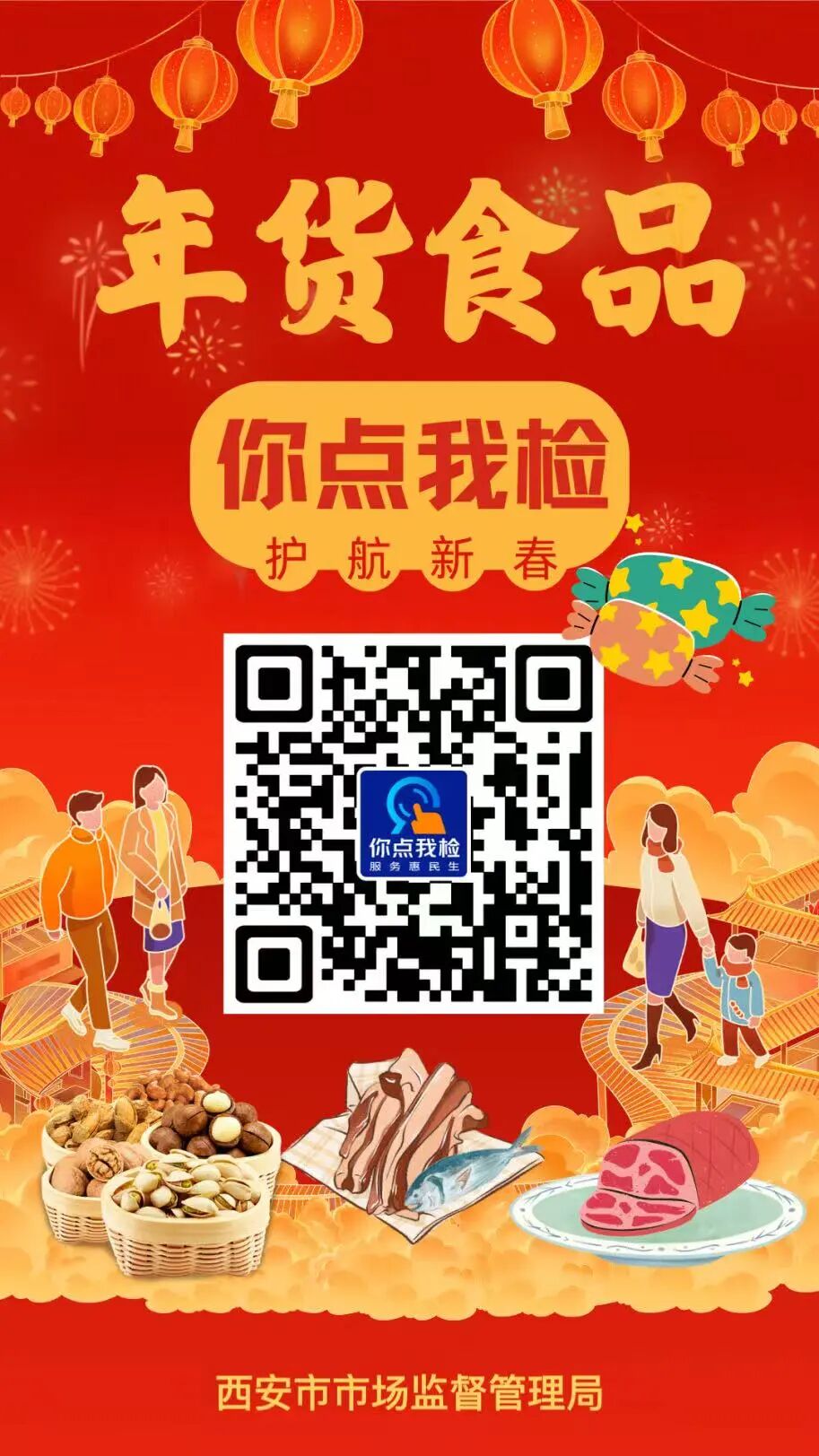 腊月门开,年味扑鼻来,家家厨房飘香,户户采办正忙。无论是超市货架上的坚果礼盒,集市里的特色腊味,还是直播间里抢购的糕点糖果,今年的年货C位,由您来定!只要是您关心关注的食品品种,都可通过我们的问卷调查提名检测,专业机构全程护航,权威数据定期公布,让每一份入选的年货都更有“安全味”。来来来,动动手指,扫描海报上的二维码,为您最惦记的“选手”投上一票。
